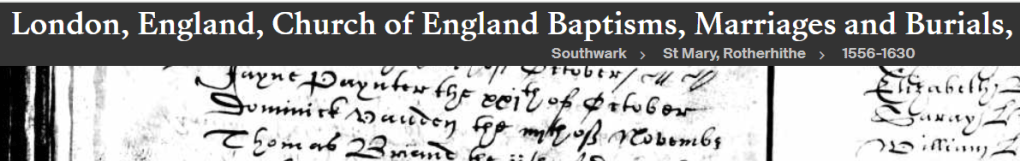 Baptismal record for Dominic Vawden in London in 1593.